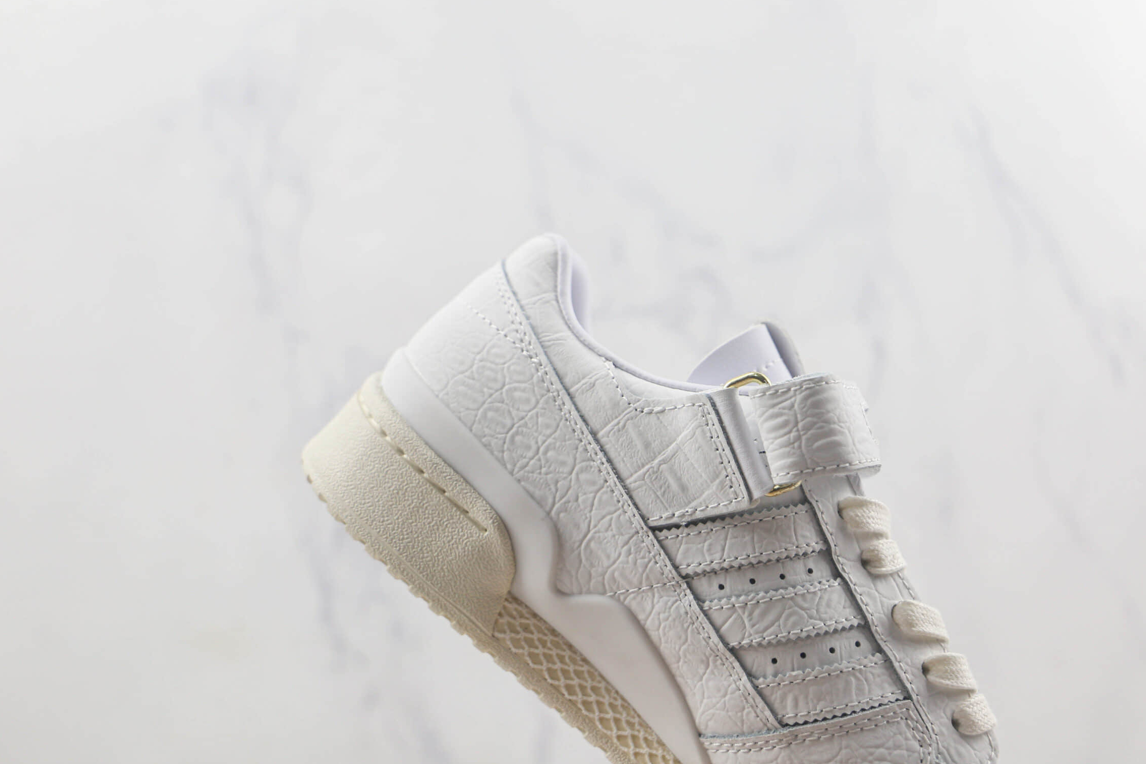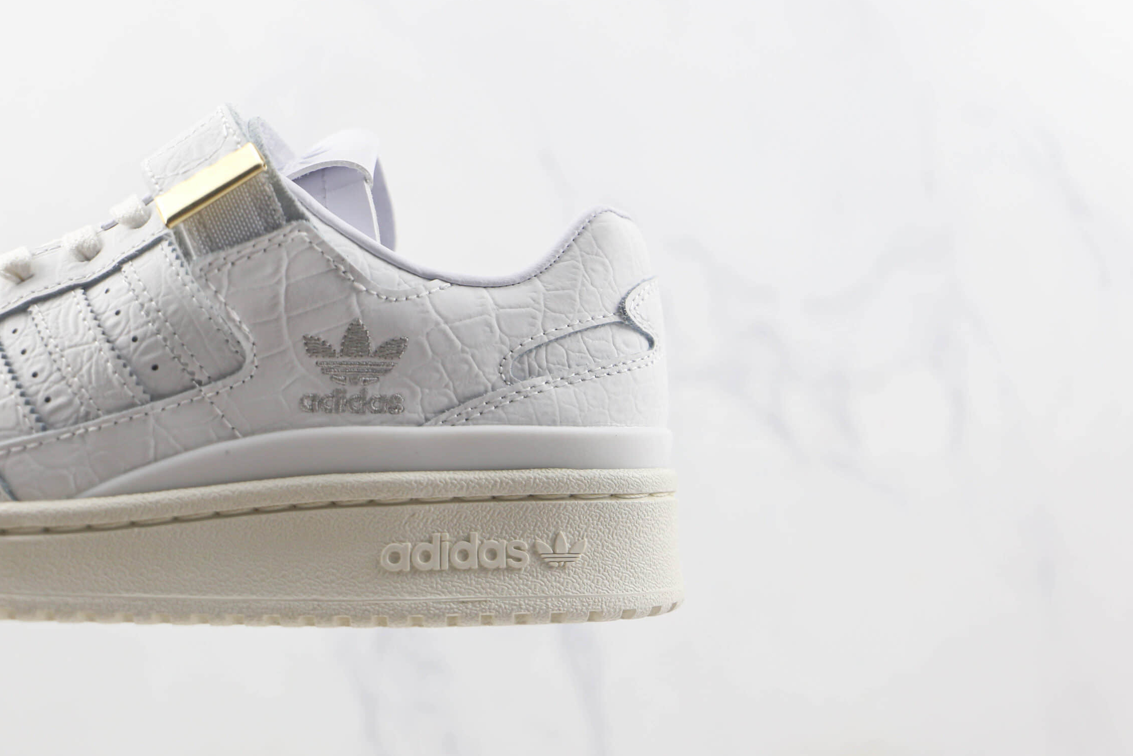 1. Classic Design: The Adidas Forum 84 Low ‘Croc Skin – White’ HP5551 showcases a classic silhouette that combines the best of retro and modern styles. Its low-top construction allows for effortless pairing with various outfits, making it a versatile footwear option.